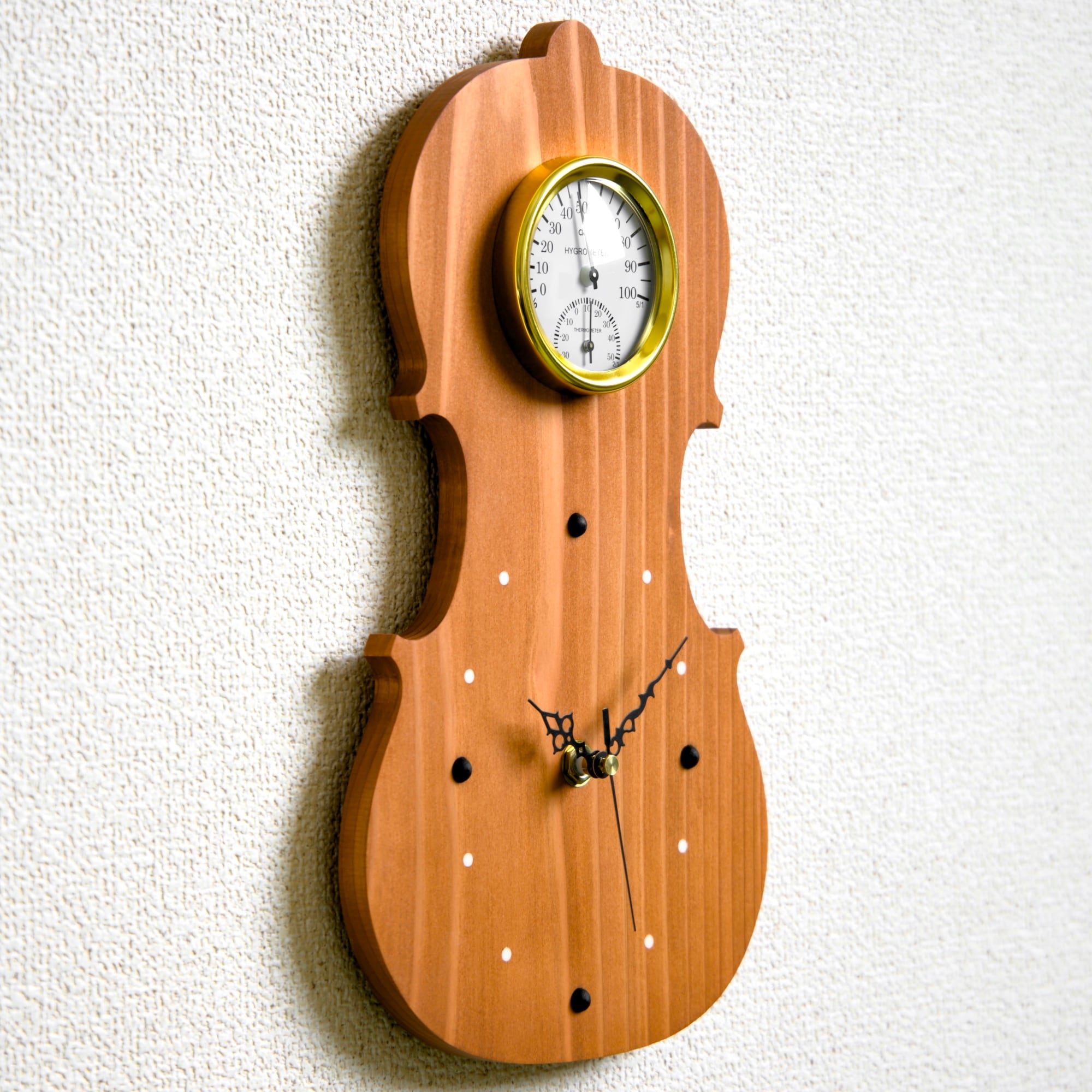 【静音秒針】掛時計『ヴァイオリン オレンジ』【温湿度計】